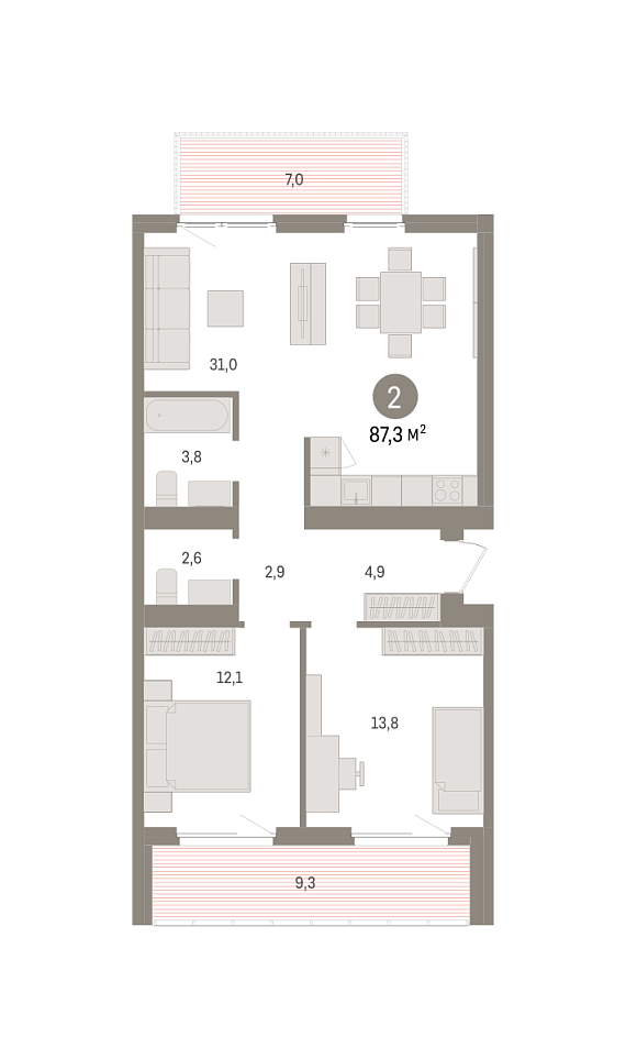 2К квартира 87,25 м²