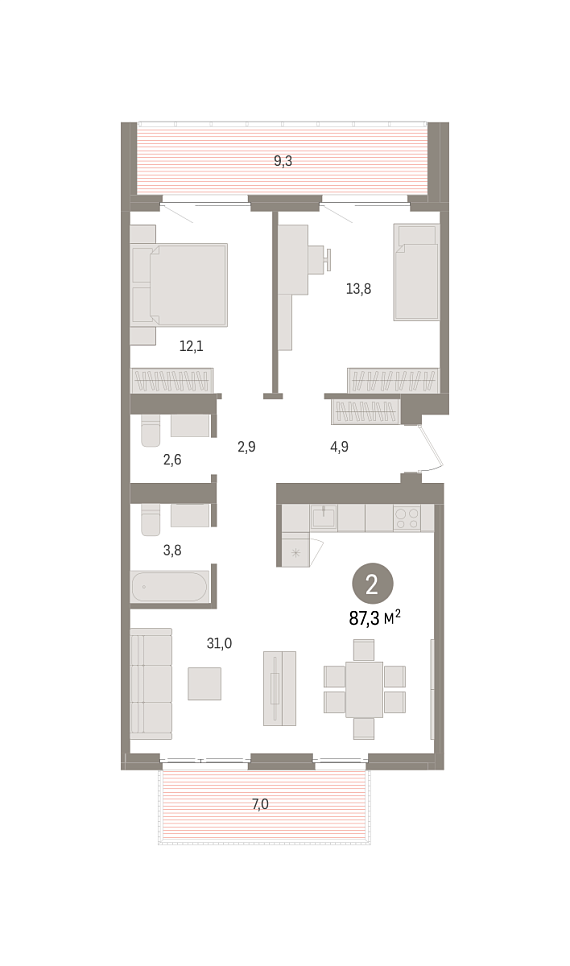 2К квартира 87,25 м²
