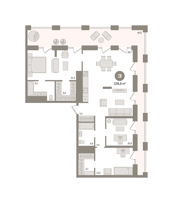 3К квартира 158,58 м²
