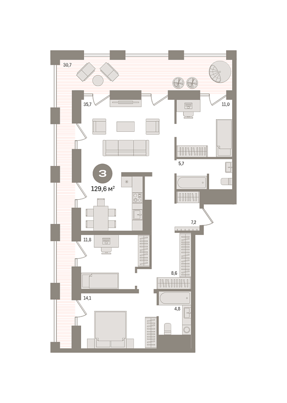 2К квартира 129,61 м²