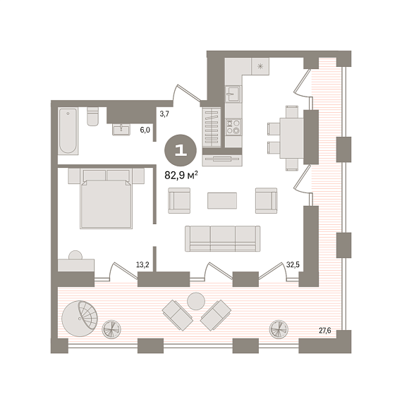 1К квартира 82,89 м²