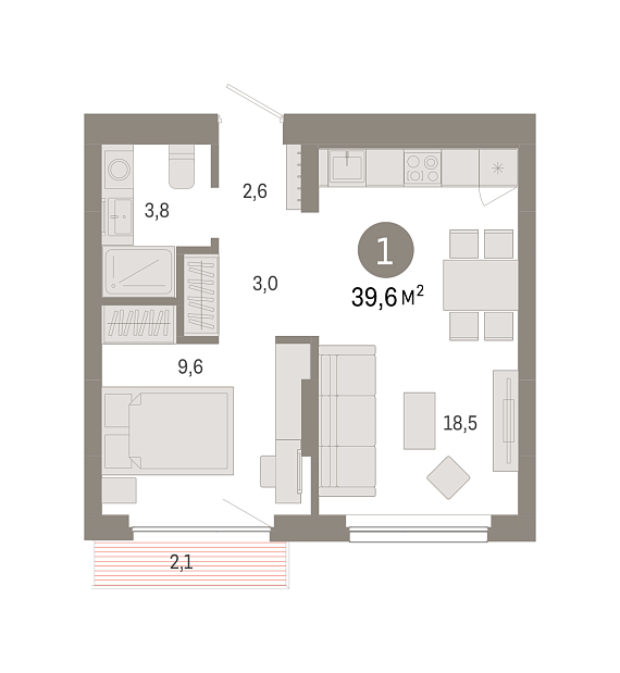 1К квартира 39,6 м²