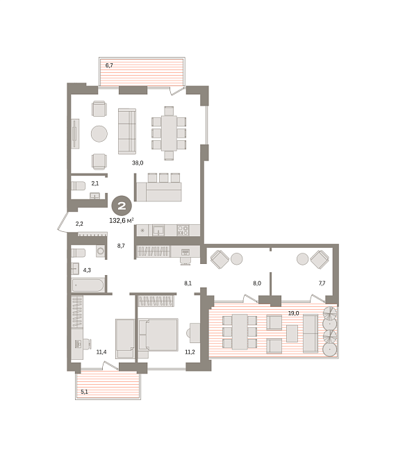 2К квартира 132,56 м²