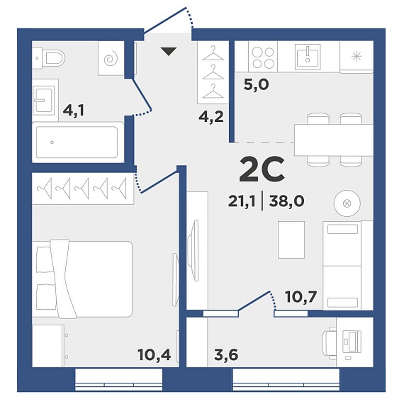 2К студия 38 м²