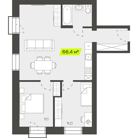 3К студия 66,45 м²