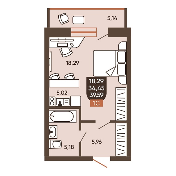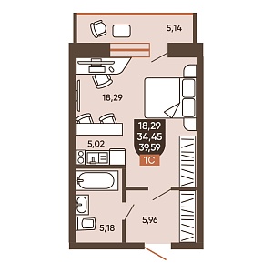 1К квартира 39,59 м²