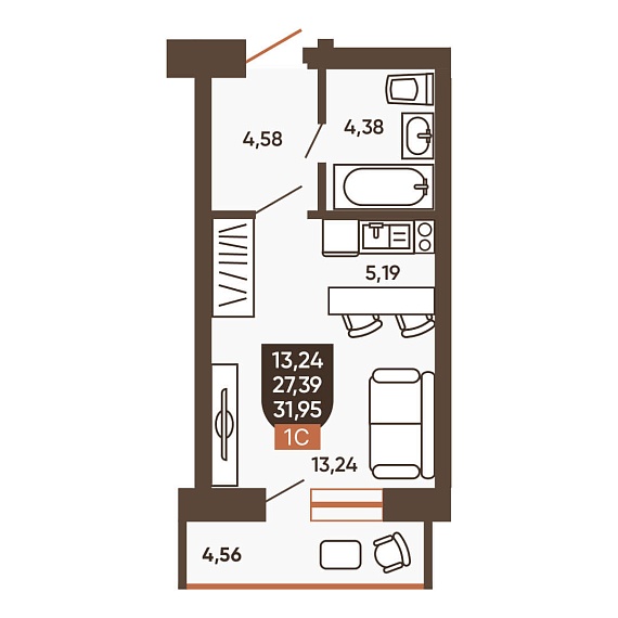 Представлены варианты квартир-студий от 27,26 м² до просторных трёхкомнатных планировок площадью 90,15 м² с мастер-спальнями и гардеробными