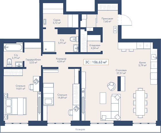3с - 106.6 м2