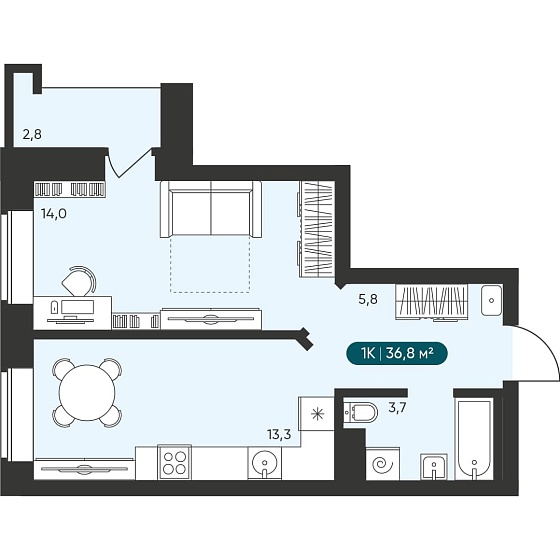 1с - 36.8 м2