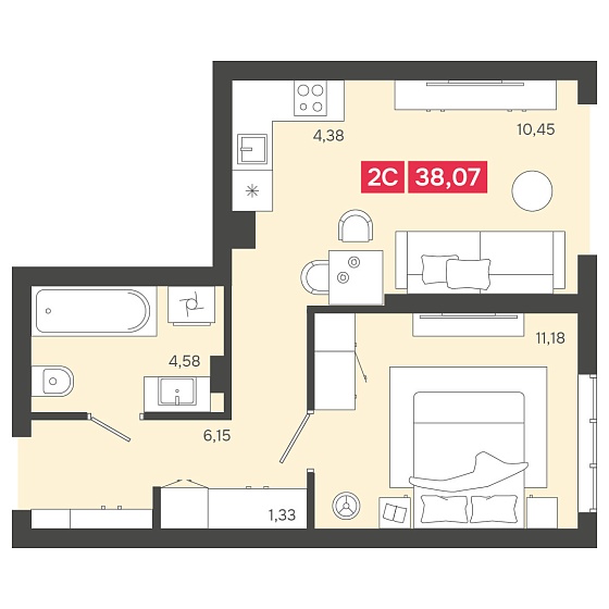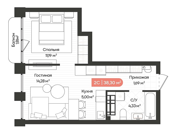 1с - 38.3 м2
