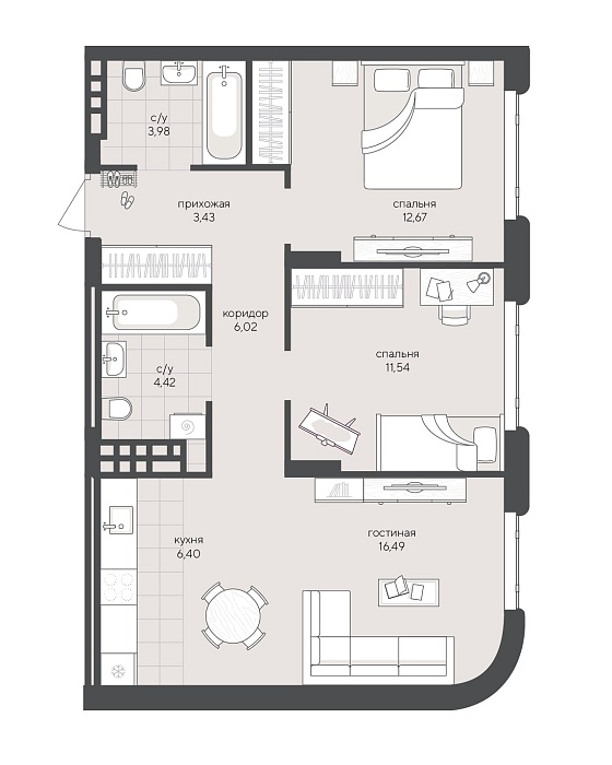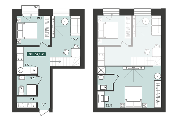 3с - 64.1 м2