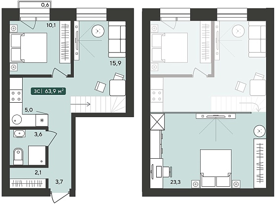 3с - 63.9 м2