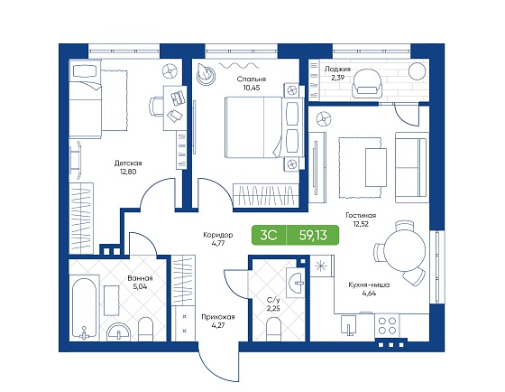 3с - 59.13 м2
