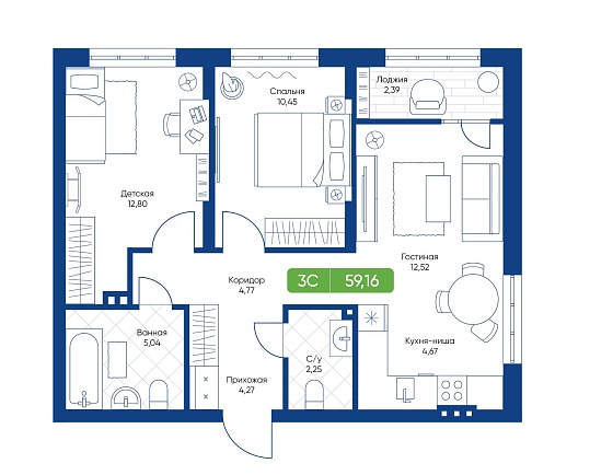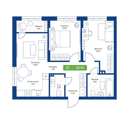 3с - 58.96 м2