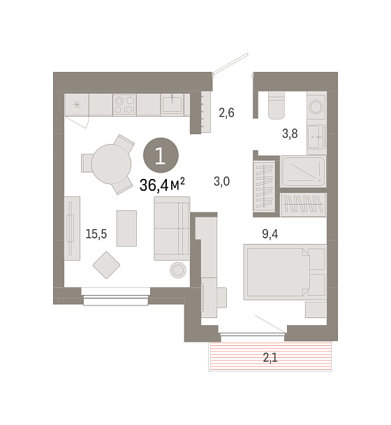 1с - 36.4 м2