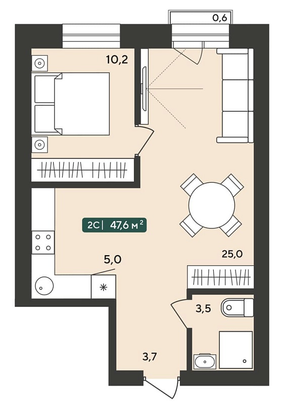 2с - 47.6 м2
