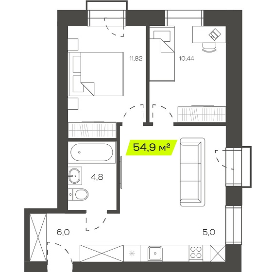 1с - 54.9 м2
