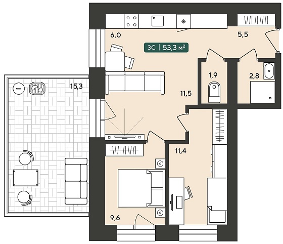 3с - 53.3 м2