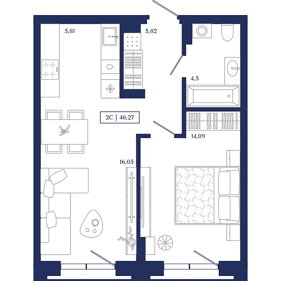 2с - 46.27 м2