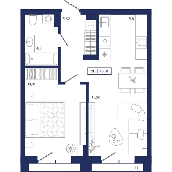 2с - 46.91 м2