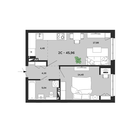 2с - 46.04 м2
