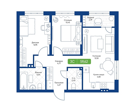 3с - 59.62 м2
