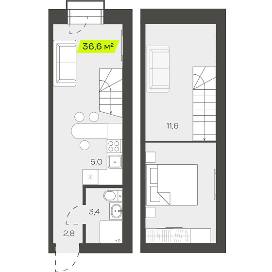 1с - 36.7 м2