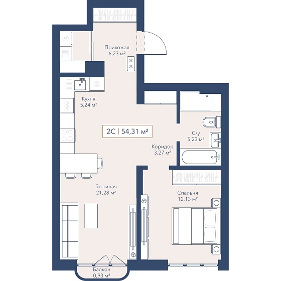 2с - 54.3 м2