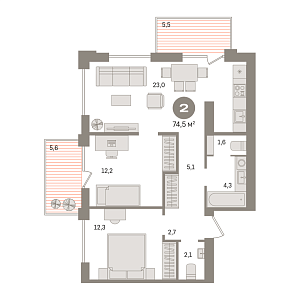 74.7 м2