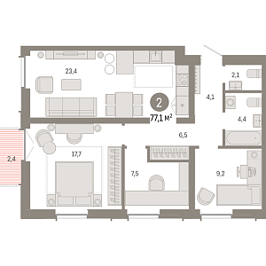 77.09 м2