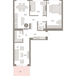 94.9 м2