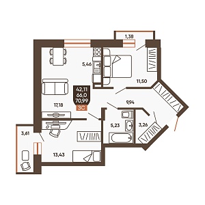 70.99 м2