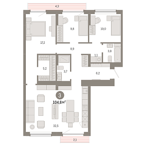 104.8 м2