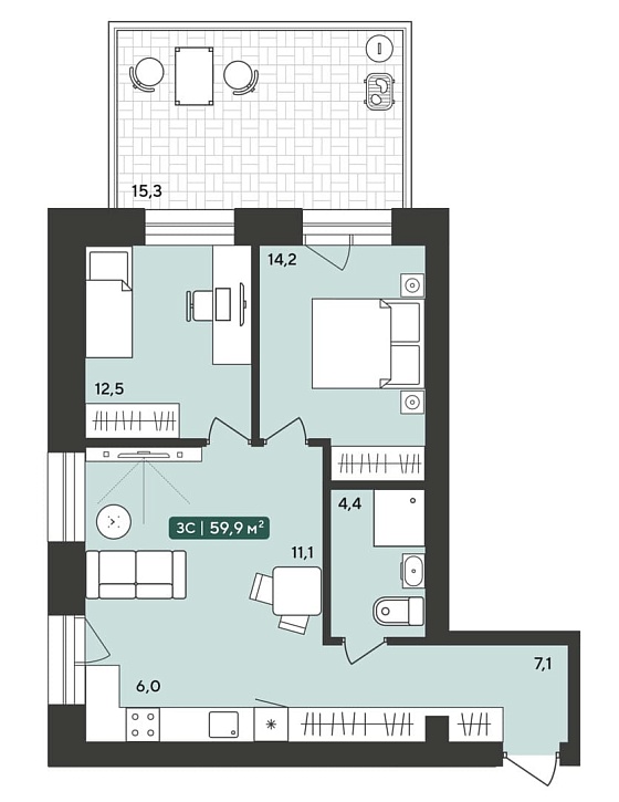 3с - 59.9 м2