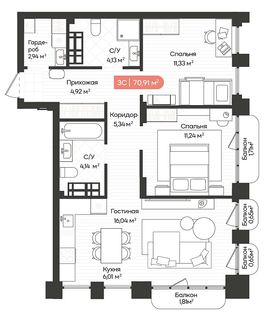 3с - 70.91 м2