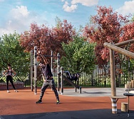 Тихий и уютный зеленый двор без машин располагает к тому, чтобы проводить время на территории у дома. Здесь предусмотрены различные игровые сценарии для детей и места для спокойного времяпровождения взрослых. Зона отдыха отделена от наземного паркинга живой стеной крупномерных лиственных и хвойных деревьев.