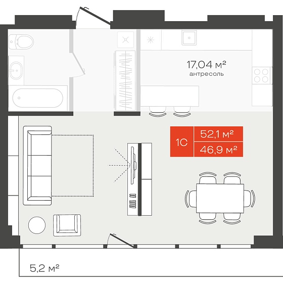 1с - 52.1 м2