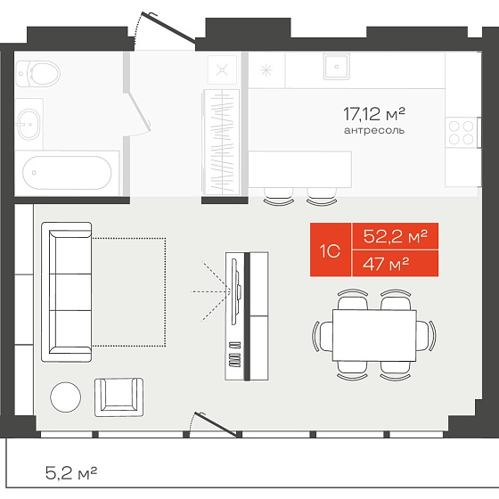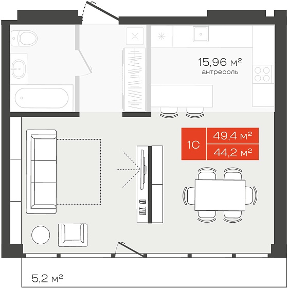 1с - 52.2 м2