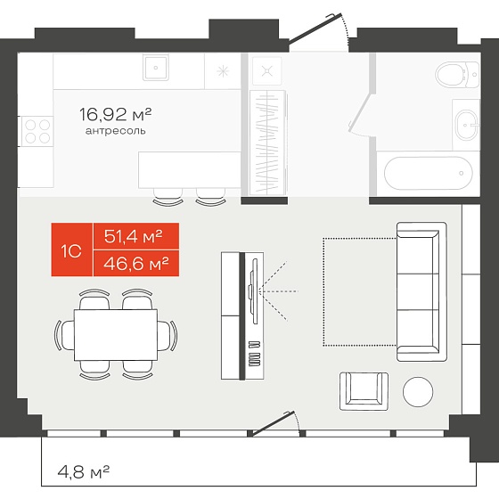 1с - 51.4 м2