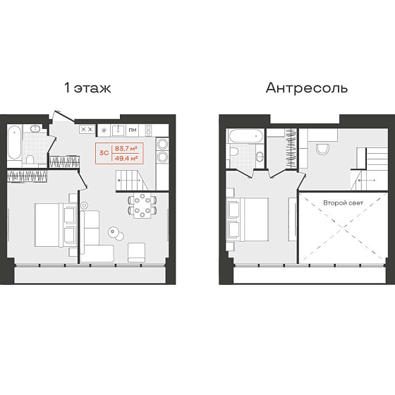 1с - 49.4 м2