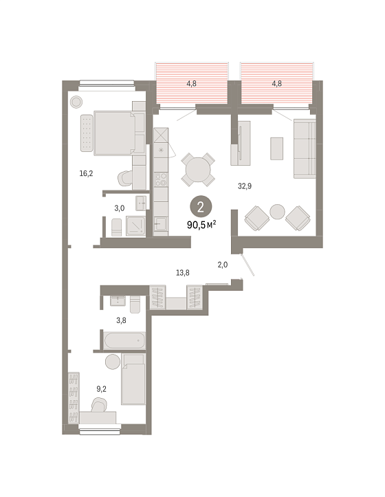 2с - 90.5 м2