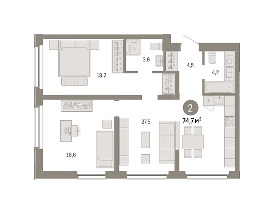 2с - 74.7 м2