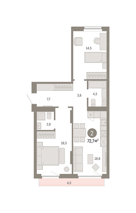 2с - 72.7 м2