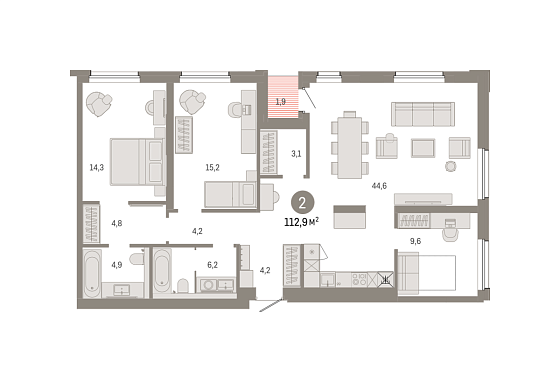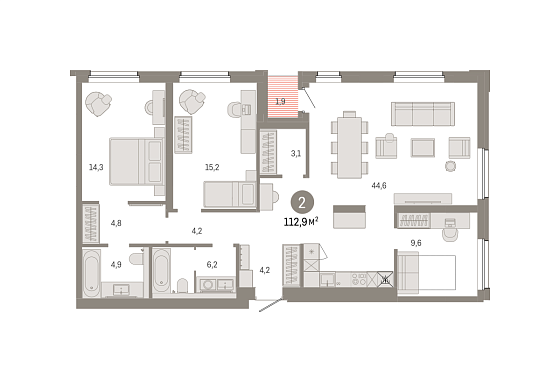 2с - 112.9 м2
