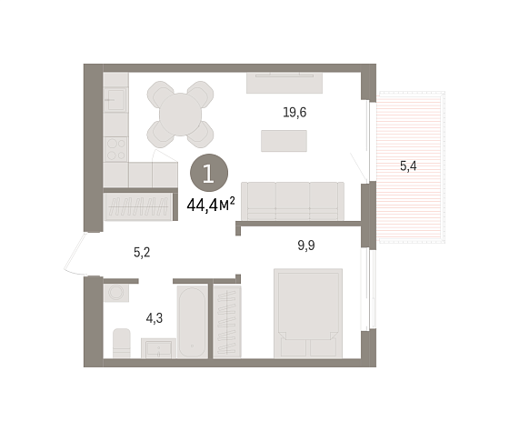 1с - 44.34 м2