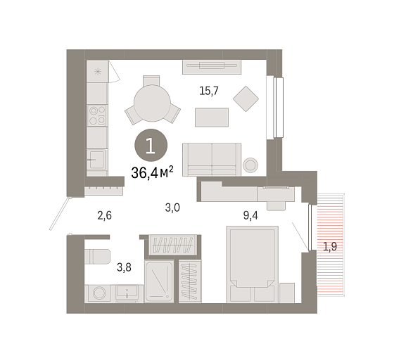 1с - 36.4 м2