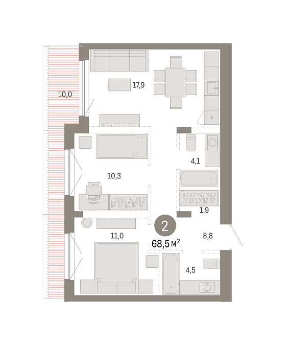 2с - 68.5 м2