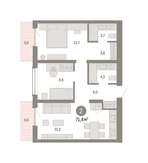 2с - 71.42 м2
