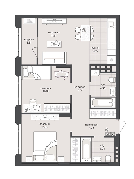 2с - 64.95 м2