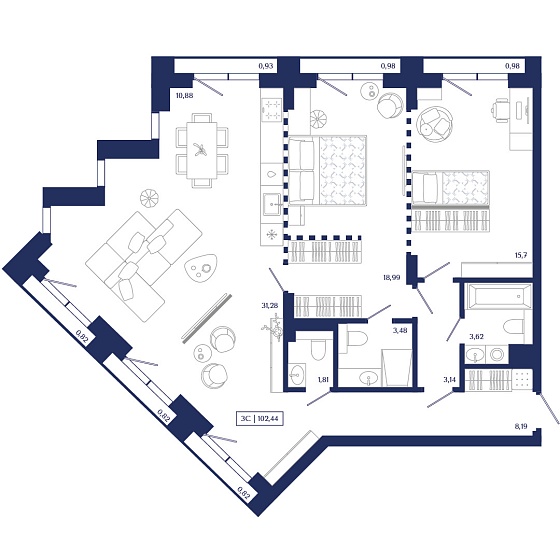 3с - 102.44 м2